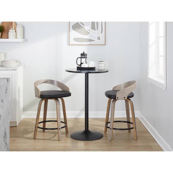 Grotto 24 in. Black Faux Leather, Lt. Grey Wood and Black Metal Fixed-Height Counter Stool (Set of 2)