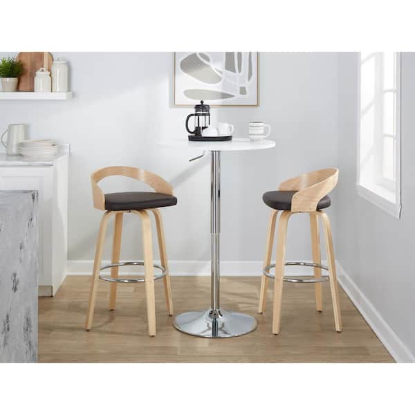 Grotto 29.5 in. Brown Faux Leather, Natural Wood and Chrome Metal Fixed-Height Bar Stool (Set of 2)