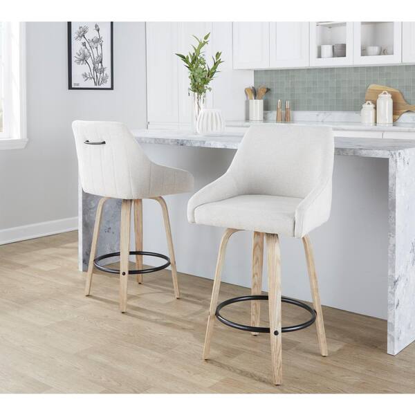 Hannah 27 in. Cream Fabric, Whitewashed Wood, and Black Metal Fixed-Height Counter Stool (Set of 2)