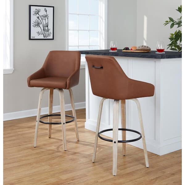 Hannah 30.75 in. Camel Faux Leather, Whitewashed Wood and Black Metal Fixed-Height Barstool (set of 2)