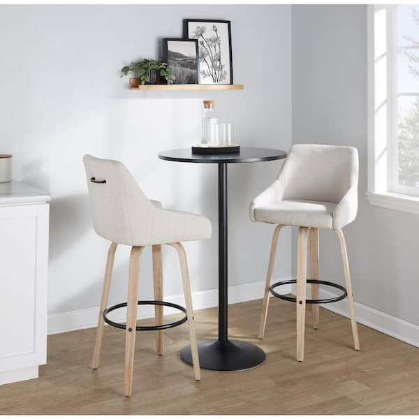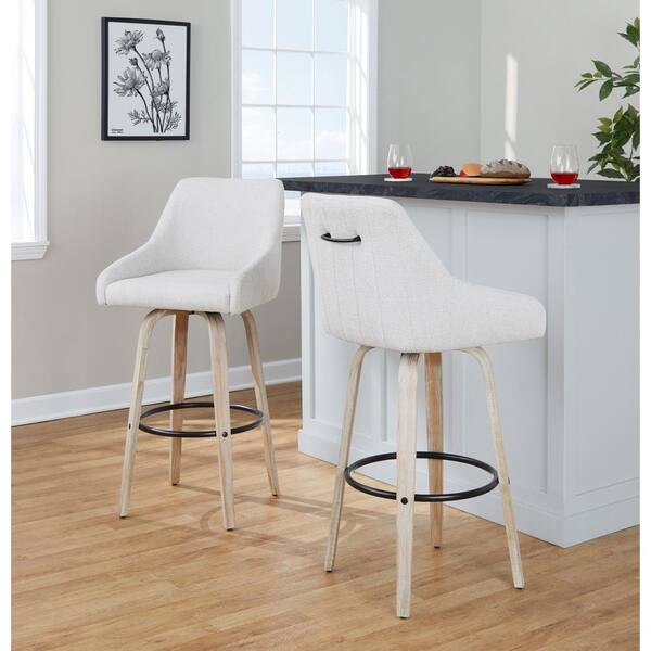 Hannah 30.75 in. Cream Fabric, Whitewashed Wood and Black Metal Fixed-Height Barstool (Set of 2)
