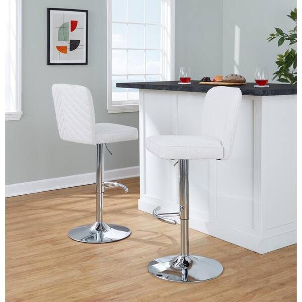 Henry 34 in. White Fabric and Chrome Metal Adjustable Barstool (Set of 2)