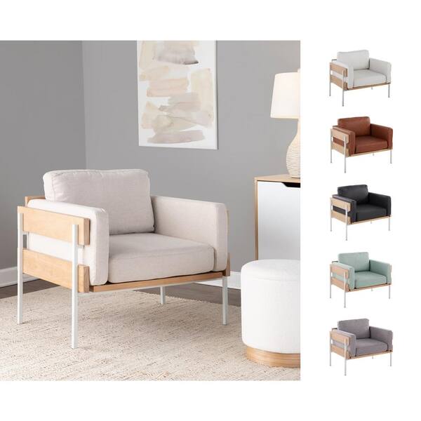 Kari Camel Faux Leather, Natural Wood and White Metal Arm Chair