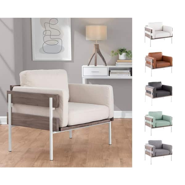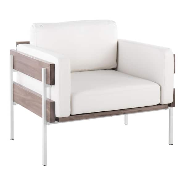 Kari White Faux Leather, Grey Wood and White Metal Arm Chair