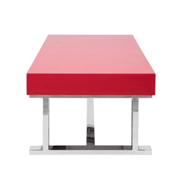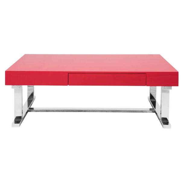 Luster Contemporary Rectangular Coffee Table in Red and Chrome