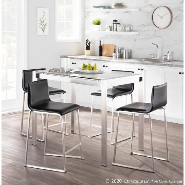 Mara 26 in. Black Faux Leather and Stainless Steel Counter Stool (Set of 2)