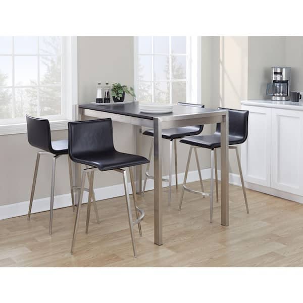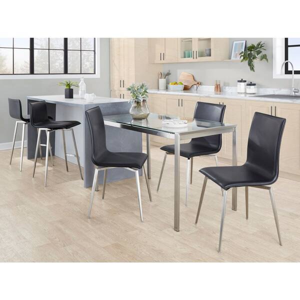 Mara Upholstered 26 in. Stainless Steel and Black Faux Leather Fixed-Height Counter Stool (Set of 2)