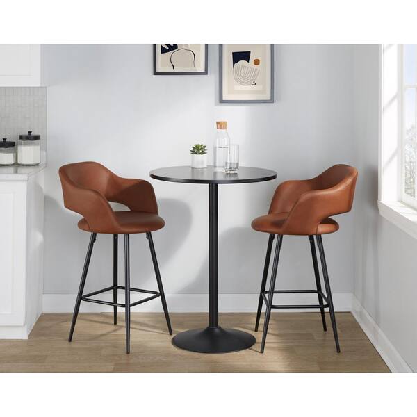 Margarite 25.25 in. Brown Faux Leather and Black Metal Fixed-Height Counter Stool (Set of 2)