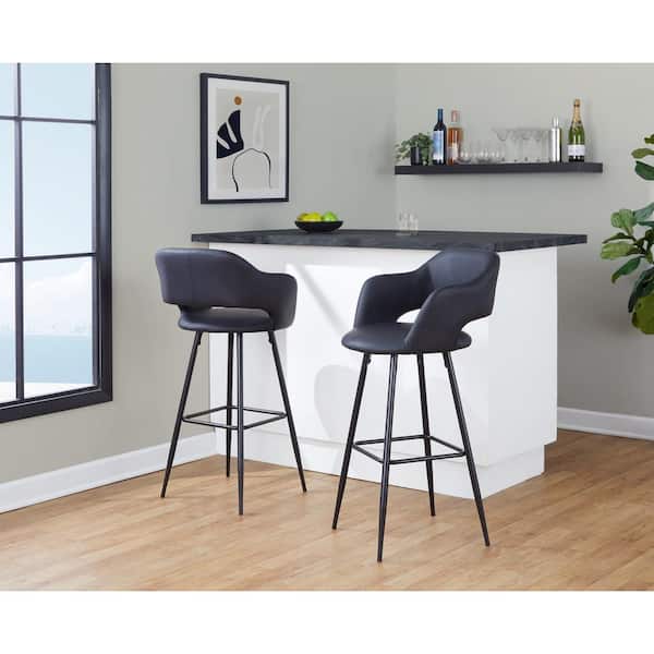 Margarite 30 in. Black Faux Leather and Black Metal Fixed-Height Barstool (Set of 2)