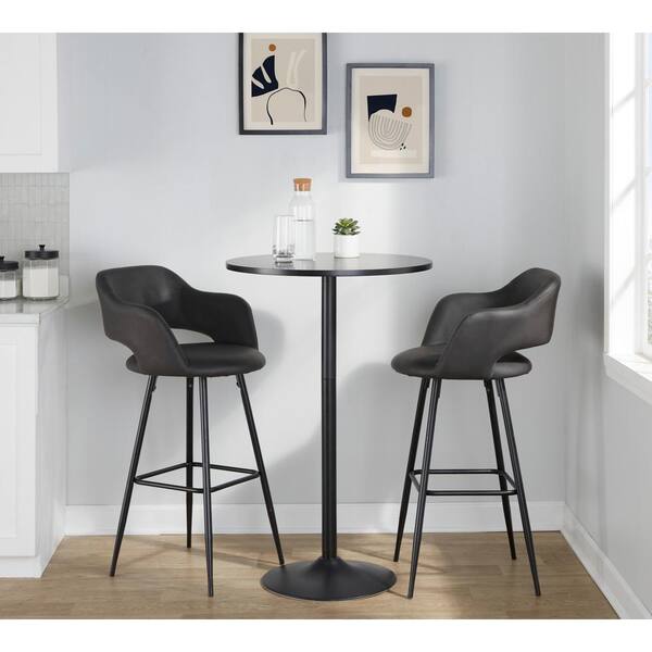 Margarite 30 in. Grey Faux Leather and Black Metal Fixed-Height Barstool (Set of 2)