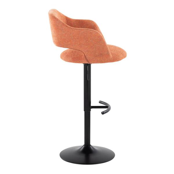 Margarite 32.75 in. Orange Fabric, Black Metal High Back Adjustable Height Bar Stool with Rounded T Footrest (Set of 2)