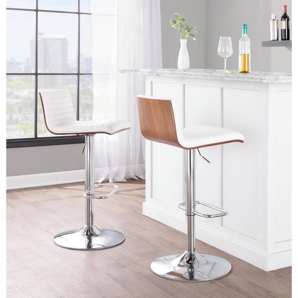 Mason 43 in. Adjustable Height White Faux Leather & Chrome Metal Bar Stool with Rounded Rectangle Footrest (Set of 2)