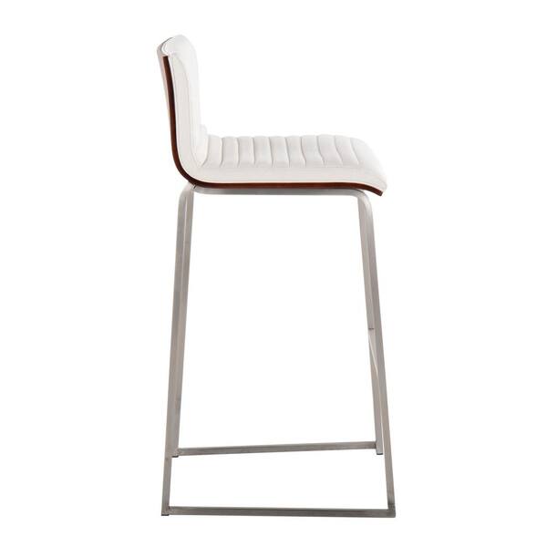 Mason Mara 38.75 in. Cream Fabric & Stainless Steel Metal High Back Bar Height Bar Stool w/Walnut Seat Back (Set of 2)