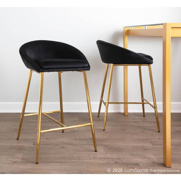 Matisse 26 in. Black Velvet and Gold Metal Counter Stool (Set of 2)