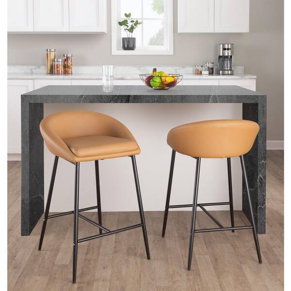 Matisse 31 in. Camel Faux Leather and Black Metal Low Back Counter Height (24-27 in.) Bar Stool (Set of 2)