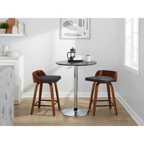 Maya 24 in. Charcoal Fabric, Walnut Wood and Black Metal Fixed-Height Counter Stool (Set of 2)