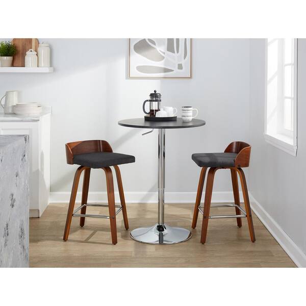 Maya 25 in. Charcoal Fabric, Walnut Wood and Chrome Metal Fixed-Height Counter Stool (Set of 2)