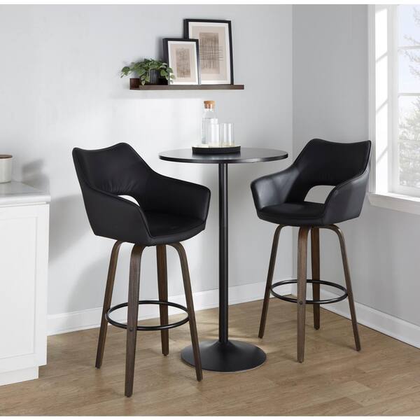 Mustang 30.25 in. Black Faux Leather, Walnut Glazed Wood, and Black Metal Fixed-Height Barstool (Set of 2)