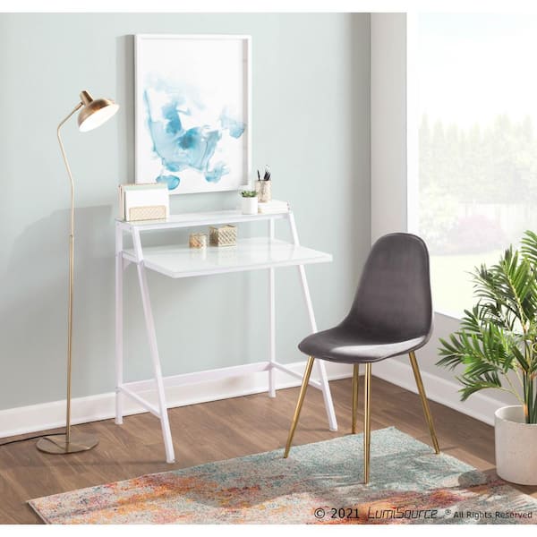Pebble Grey Velvet and Gold Metal Dining Chair (Set of 2)