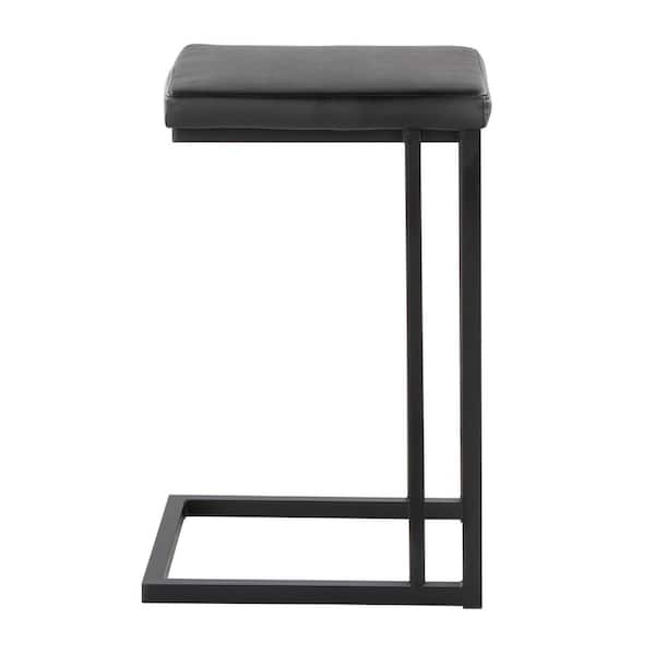 Roman 26 in. Fixed-Height Counter Stool in Black Metal and Black Faux Leather (Set of 2)