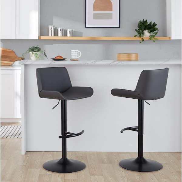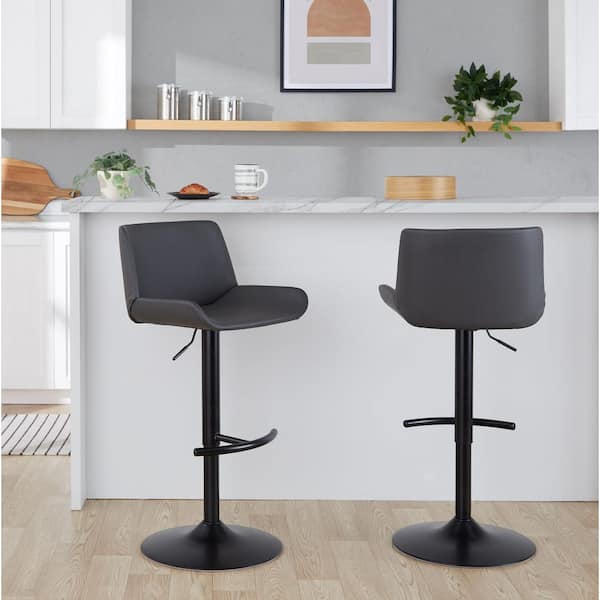 Santi 31.5 in. Grey Faux Leather and Black Metal Adjustable Barstool (Set of 2)