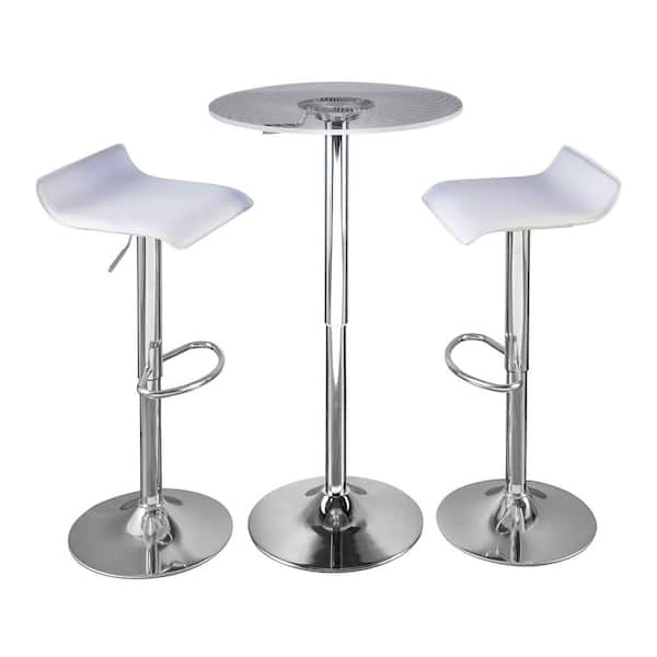 Spyra-Ale 3-Piece Chrome Metal, White Faux Leather, and Clear Acrylic Top Bar Set