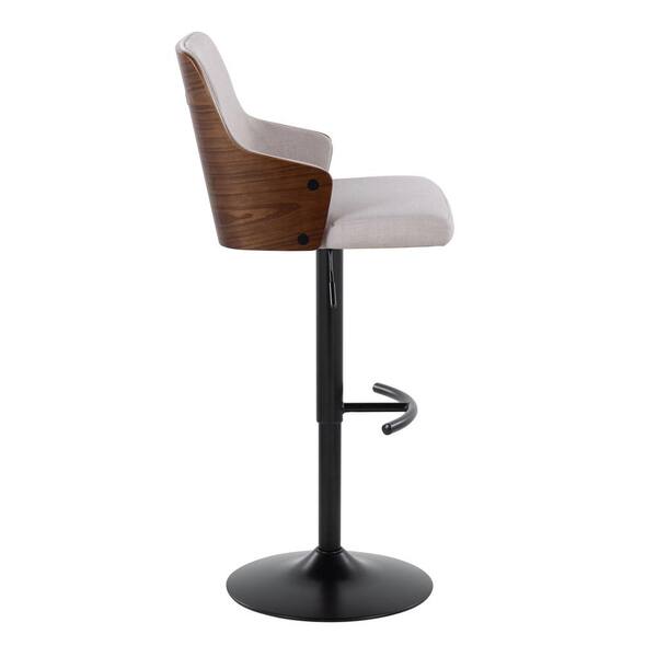 Stella 34 in. Beige Fabric, Walnut Wood and Black Metal Adjustable Bar Stool with Rounded T Footrest (Set of 2)