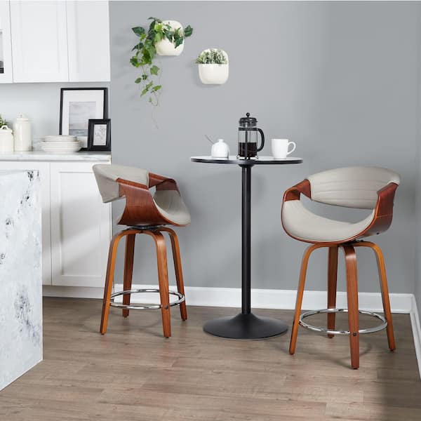 Symphony 24 in. Walnut Wood and Grey Faux Leather Fixed-Height Counter Stool with Round Chrome Footrest (Set of 2) LYW