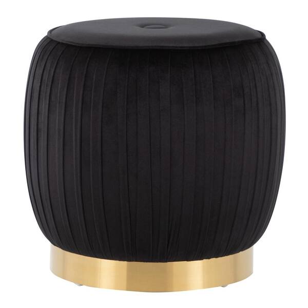 Tania Black Velvet and Gold Steel Ottoman