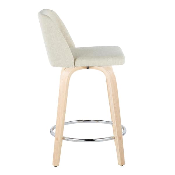 Toriano 24.25 in. Cream Fabric, Natural Wood and Chrome Metal Fixed-Height Counter Stool (Set of 2)
