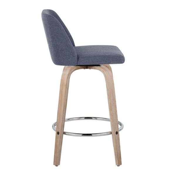 Toriano 25.5 in. Blue Fabric, Whitewashed Wood, and Chrome Metal Fixed-Height Counter Stool (Set of 2)