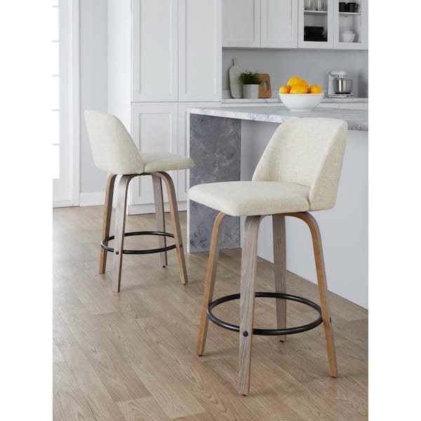 Toriano 25.5 in. Cream Fabric, Light Grey Wood and Black Metal Fixed-Height Counter Stool (Set of 2)