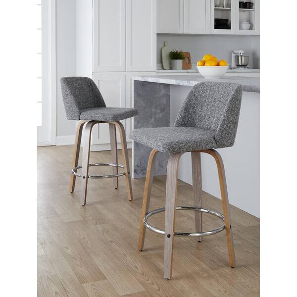 Toriano 25.5 in. Grey Noise Fabric, Light Grey Wood and Chrome Metal Fixed-Height Counter Stool (Set of 2)