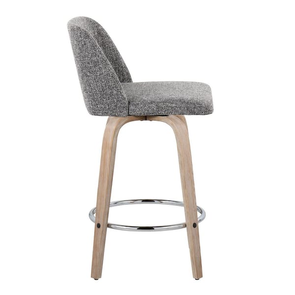 Toriano 25.5 in. Grey Noise Fabric, Whitewashed Wood, and Chrome Metal Fixed-Height Counter Stool (Set of 2)