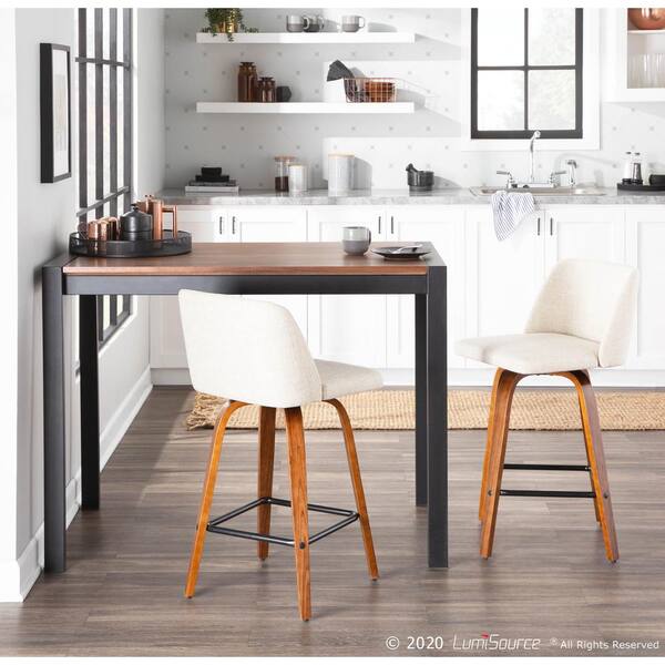 Toriano 26 in. Walnut and Cream Fabric Counter Stool with Black Square Footrest (Set of 2)