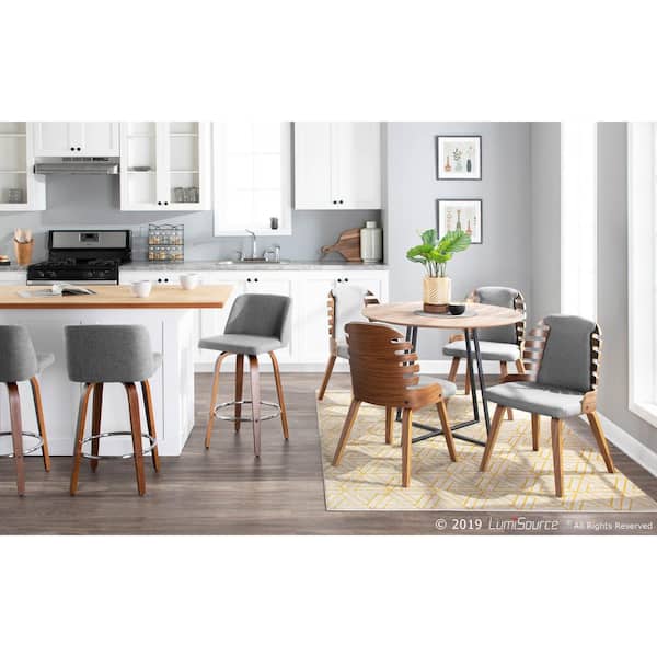 Toriano 26 in. Walnut and Grey Fabric Counter Stool with Round Chrome Footrest (Set of 2)