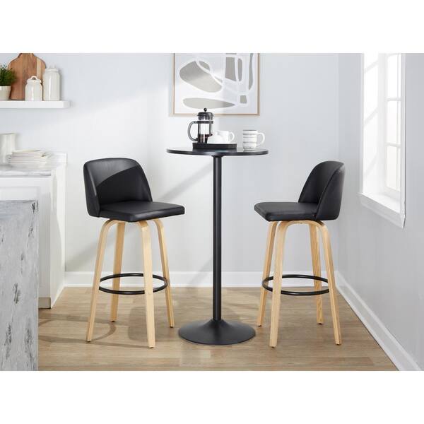 Toriano 29.5 in. Black Faux Leather, Natural Wood and Black Metal Fixed-Height Bar Stool (Set of 2)