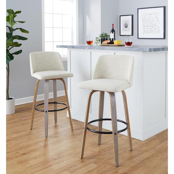Toriano 29.5 in. Cream Noise Fabric, Light Grey Wood, and Black Metal Fixed-Height Bar Stool (Set of 2)