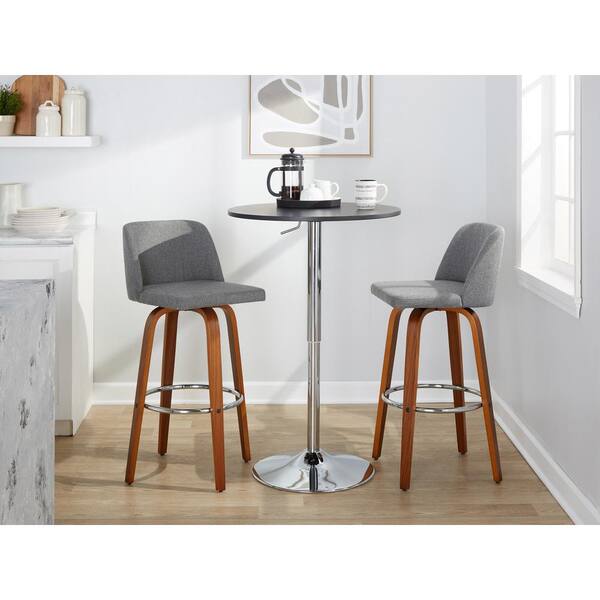 Toriano 29.5 in. Grey Fabric, Walnut Wood, and Chrome Metal Fixed-Height Bar Stool (Set of 2)