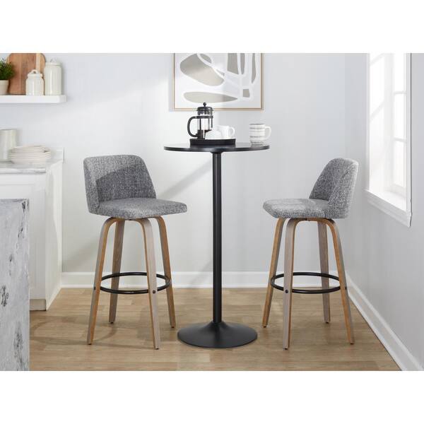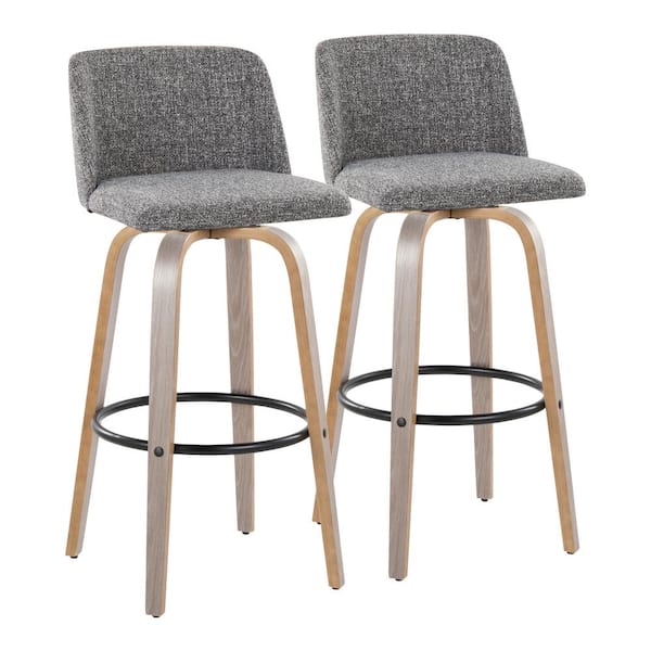 Toriano 29.5 in. Grey Noise Fabric, Light Grey Wood, and Black Metal Fixed-Height Bar Stool (Set of 2)