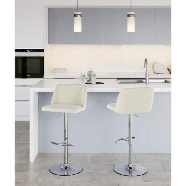 Toriano 33 in. Cream Fabric and Chrome Metal Adjustable Bar Stool with Rounded T Footrest (Set of 2)