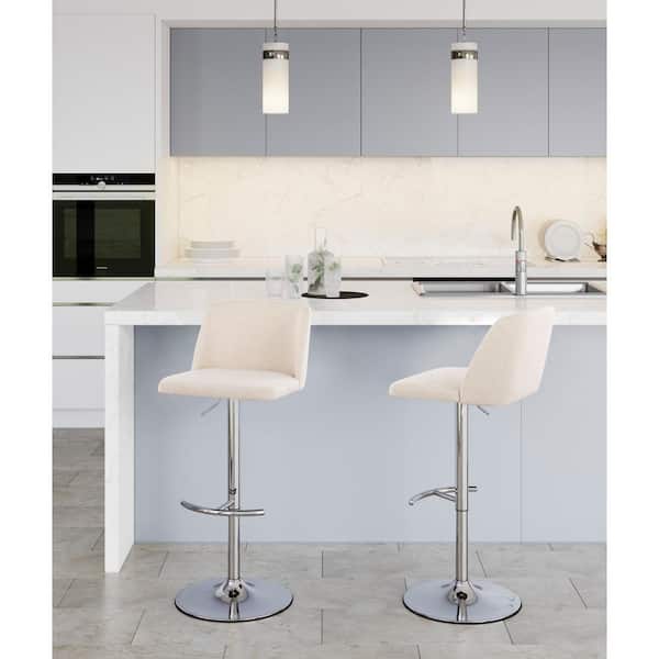 Toriano 33 in. Cream Noise Fabric and Chrome Metal Adjustable Bar Stool with Rounded T Footrest (Set of 2)