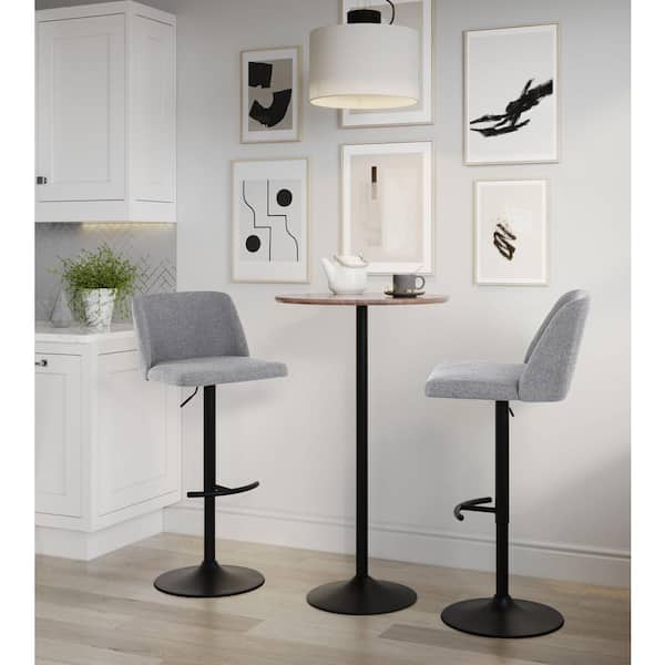 Toriano 33 in. Grey Fabric and Black Metal Adjustable Bar Stool with Rounded T Footrest (Set of 2)