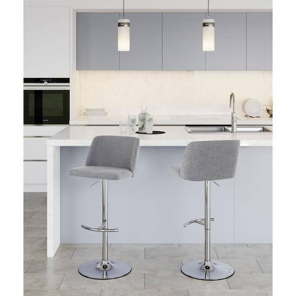 Toriano 33 in. Grey Fabric and Chrome Metal Adjustable Bar Stool with Rounded T Footrest (Set of 2)