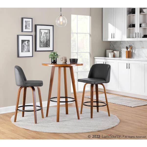 Toriano 35 in. Grey Faux Leather and Walnut Wood-Counter Height Bar Stool with Round Black Footrest (Set of 2)