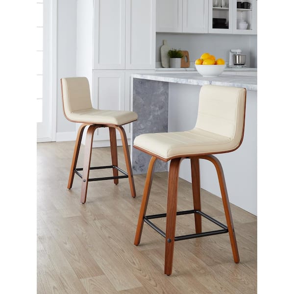 Vasari 24 in. Cream Faux Leather, Walnut Wood and Black Metal Fixed-Height Counter Stool (Set of 2)