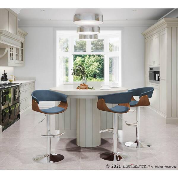 Vintage 32 in. Mod Adjustable Bar Stool in Walnut and Blue