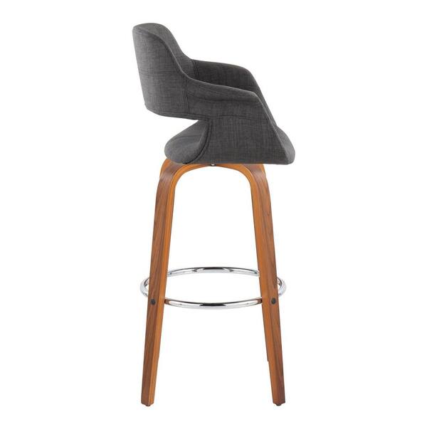 Vintage Flair 29.25 in. Charcoal Fabric, Walnut Wood and Chrome Metal Fixed-Height Bar Stool Round Footrest (Set of 2)