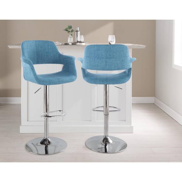 Vintage Flair 47.25 in. Blue Fabric and Chrome High Back Adjustable Bar Stool with Oval Footrest (Set of 2)