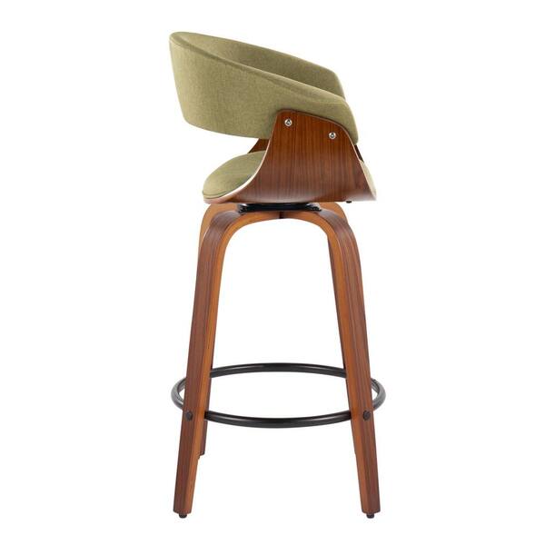 Vintage Mod 25.25 in. Green Fabric, Walnut Wood and Black Metal Fixed-Height Counter Stool Round Footrest (Set of 2)
